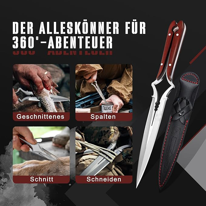 Designed to excel in a variety of outdoor tasks including skinning, cutting, shelter building, and food preparation, making it an essential tool for adventurers and survivalists.
