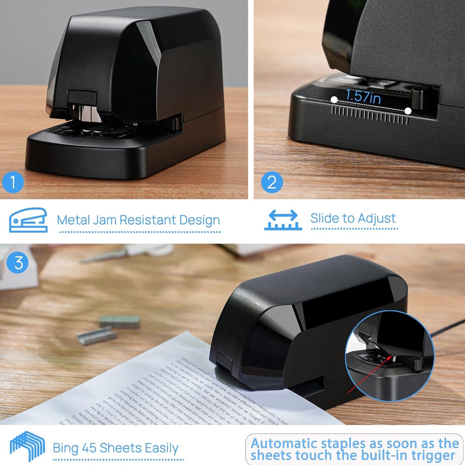 A powerful electric stapler designed to save your wrists from the strain of manual stapling — featuring automatic smart stapling, jam-resistant technology.
