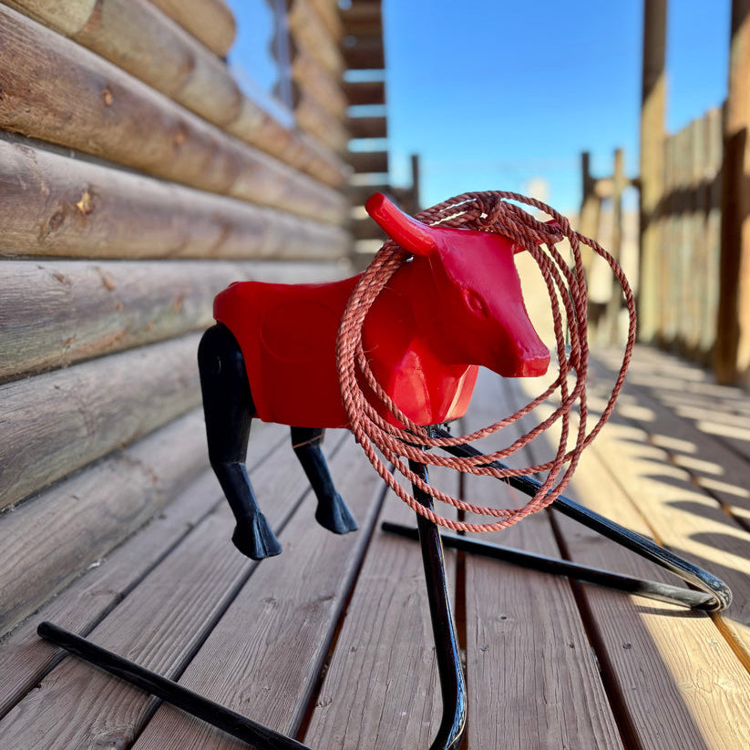 Compact lasso trainer designed for small cowboys and cowgirls. Easy to set up in backyard, ranch, or even living room for fun skill-building.