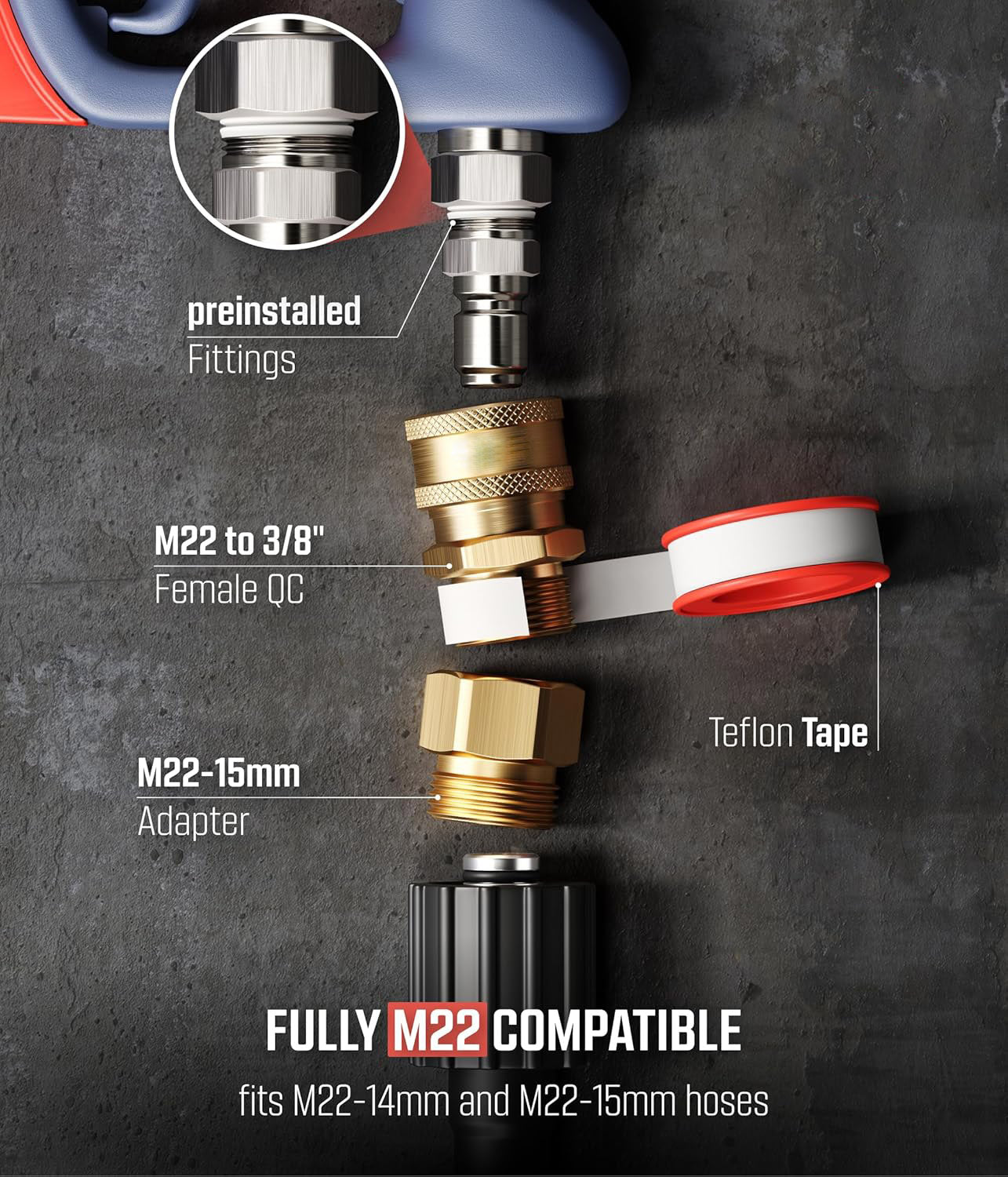 Equipped with 3/8 inch threaded inlet and 1/4 inch quick connector for easy compatibility.