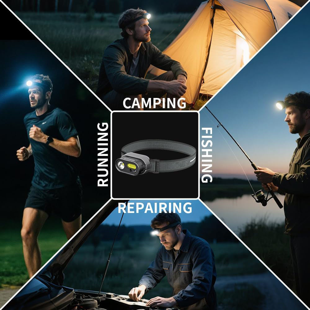 Light up every step with this compact, hands-free headlamp designed for camping, hiking, night running, and outdoor work. Ultra-lightweight yet powerful, it combines smart motion sensing, multiple lighting modes, and long-lasting battery life—giving you reliable illumination wherever the adventure takes you.